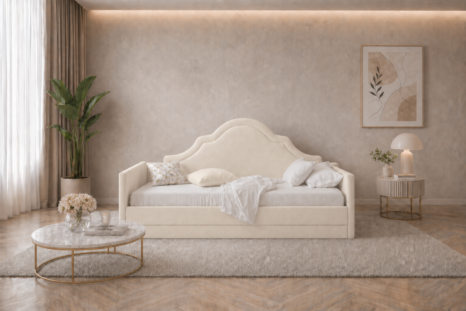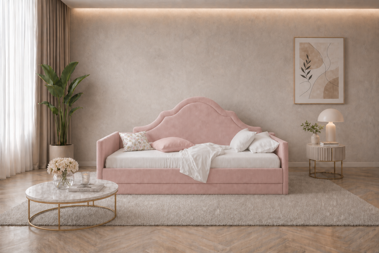 Il nostro Grace Sofa disegnato con un gusto retrò, la sua testata imbottita è stata pensata per trasportare i più piccoli in un mondo fatato senza tempo.