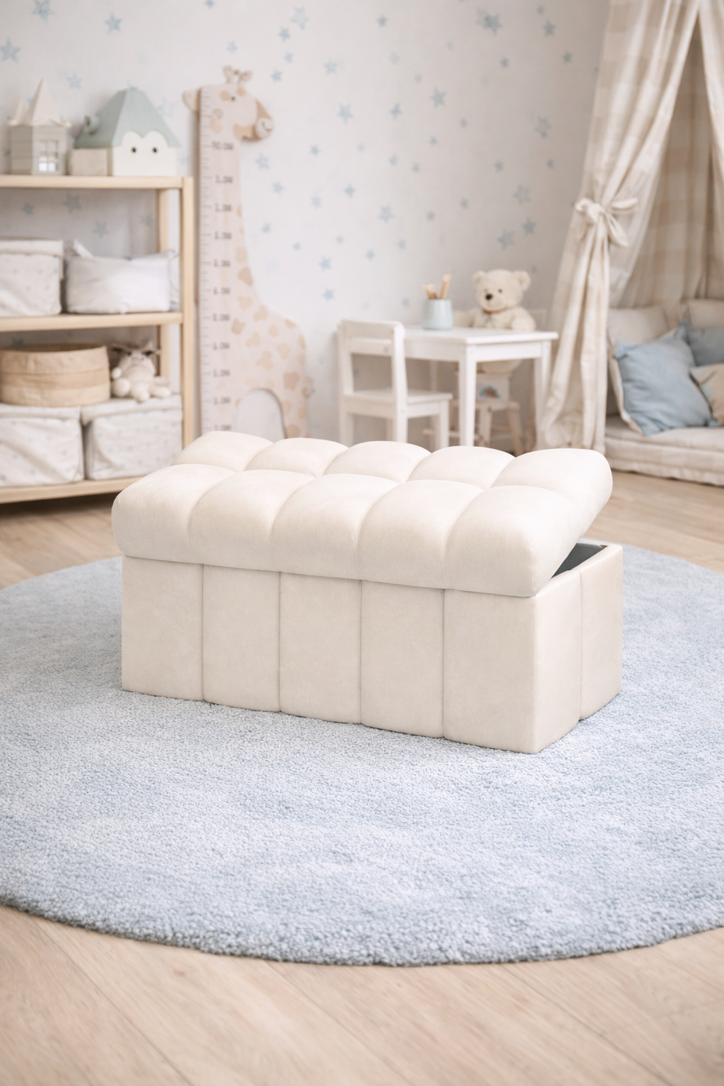 Mia Bench un comodo Pouf contenitore con morbido rivestimento trapuntato a rombi.