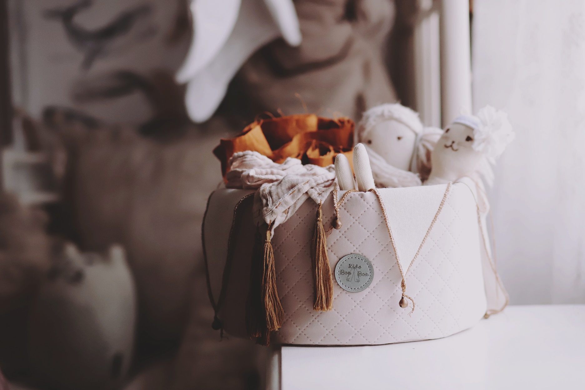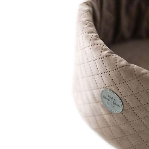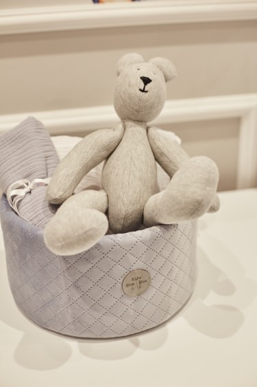 Our Bamby Basket Mini in quilted velvet fabric, an elegant furnishing accessory for those who want to organise accessories, changing table products, bath products and small toys without sacrificing a unique décor product.