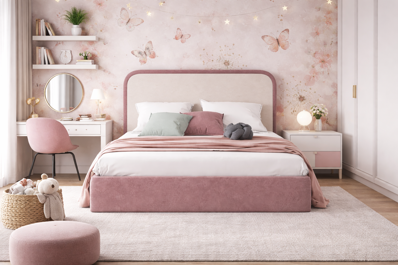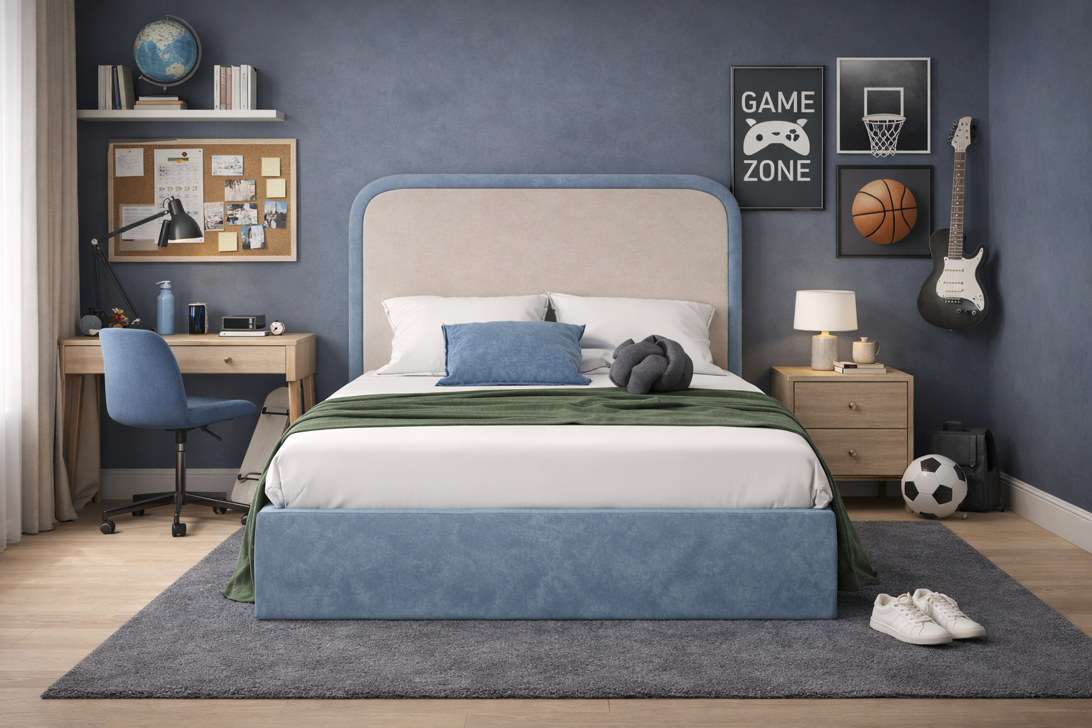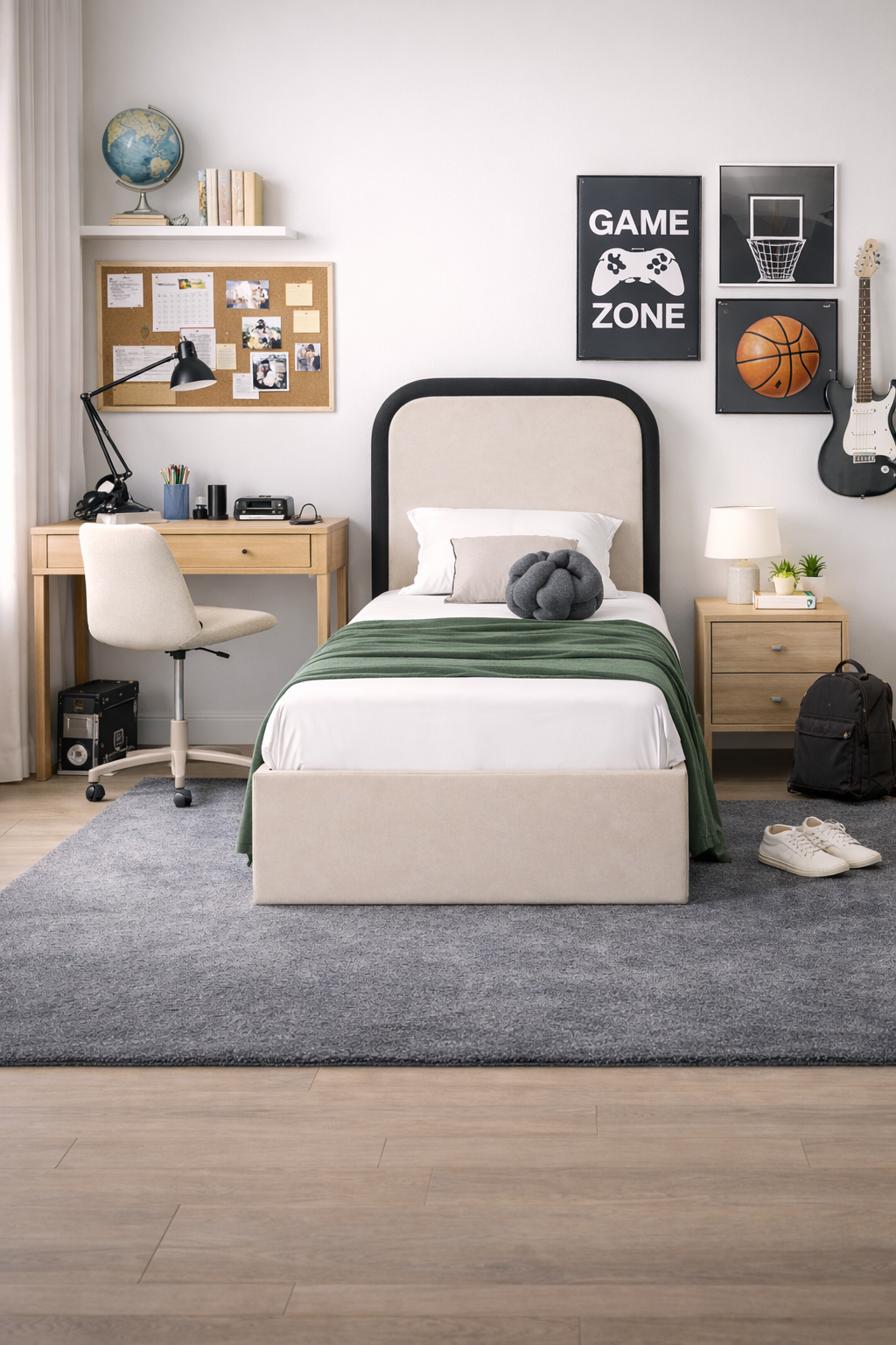Il nostro Essential Bed, un modello che esalta l’essenzialità delle forme e dell’essenza di Bon Bon Kids. Testata leggermente addolcita sui lati e doppio colore nella sua imbottitura. Colori e dimensioni personalizzabili.