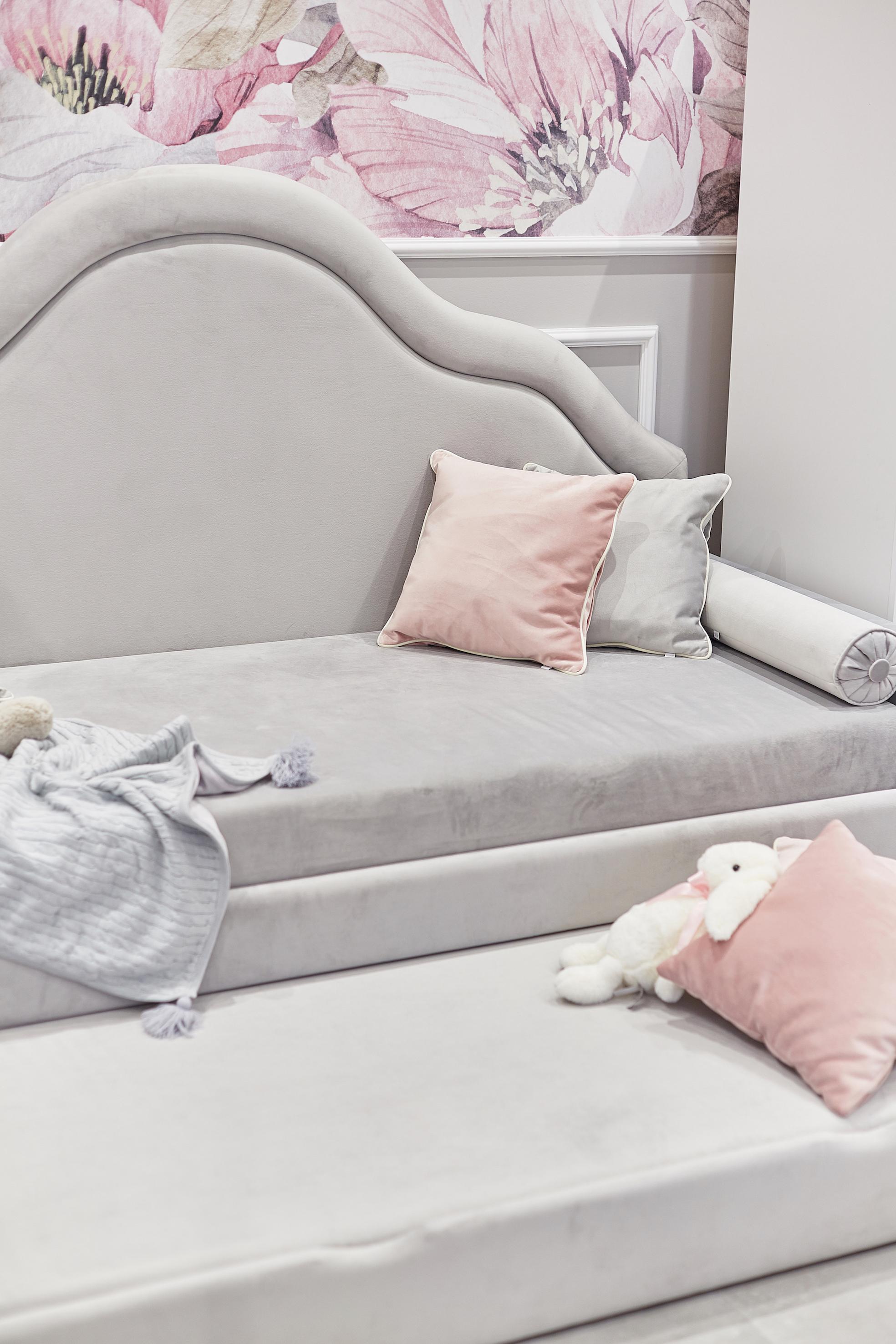 Il nostro Grace Sofa disegnato con un gusto retrò, la sua testata imbottita è stata pensata per trasportare i più piccoli in un mondo fatato senza tempo.